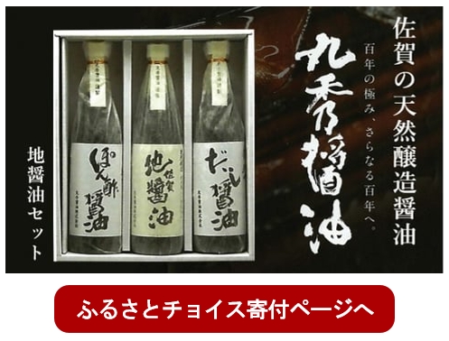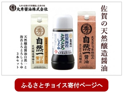 自然一醤油は温度管理や菌の添加を行なわない天然醸造という伝統的な製法で、2年間という長い時間をかけて発酵・熟成させて作ります。ほか佐賀海苔とろとろしょうゆも入った3本セットです。